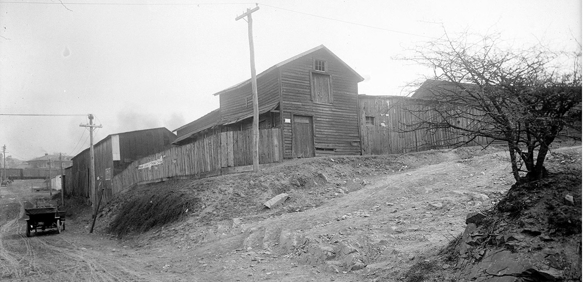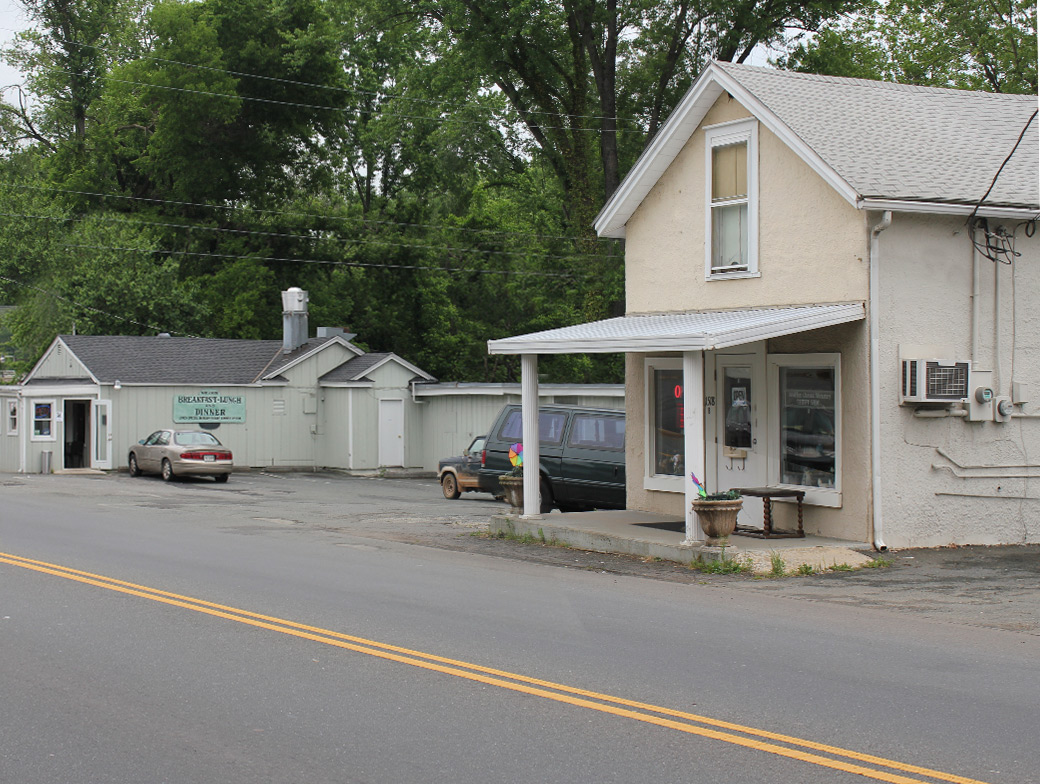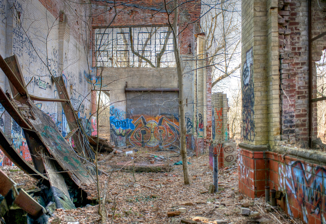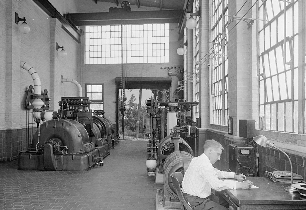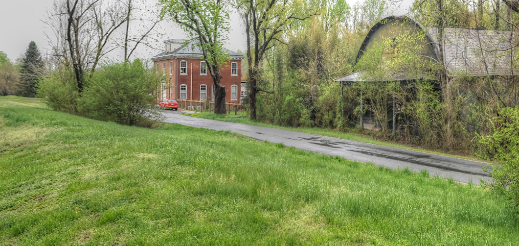 The Charlottesville & Albemarle Railway Power Plant near Woolen Mills, circa 1914, shortly after it was built. The plant’s proximity to the river allowed for use of water to operate the steam turbines. It’s proximity to the railroad allowed for delivery of coal. The plant produced electricity which was used primarily to operate an electric streetcar system running between downtown Charlottesville and the University of Virginia. The more recent shot shows it again about a century later, completely abandoned. (B&W image courtesy Special Collections, UVA Library)