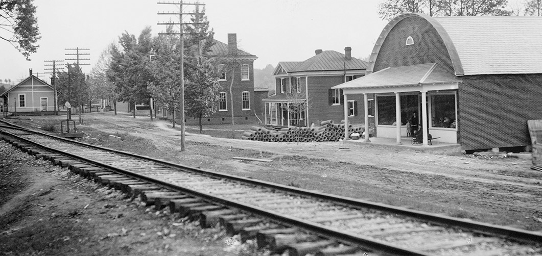 Esmont in southern Albemarle County is a small town named after the nearby plantation. The older picture shows the railroad and depot which are now long gone. Other buildings, seen in the photograph from a century ago, still exist (in various conditions) in this small rural community.