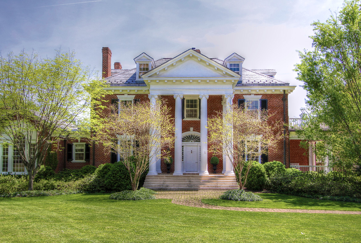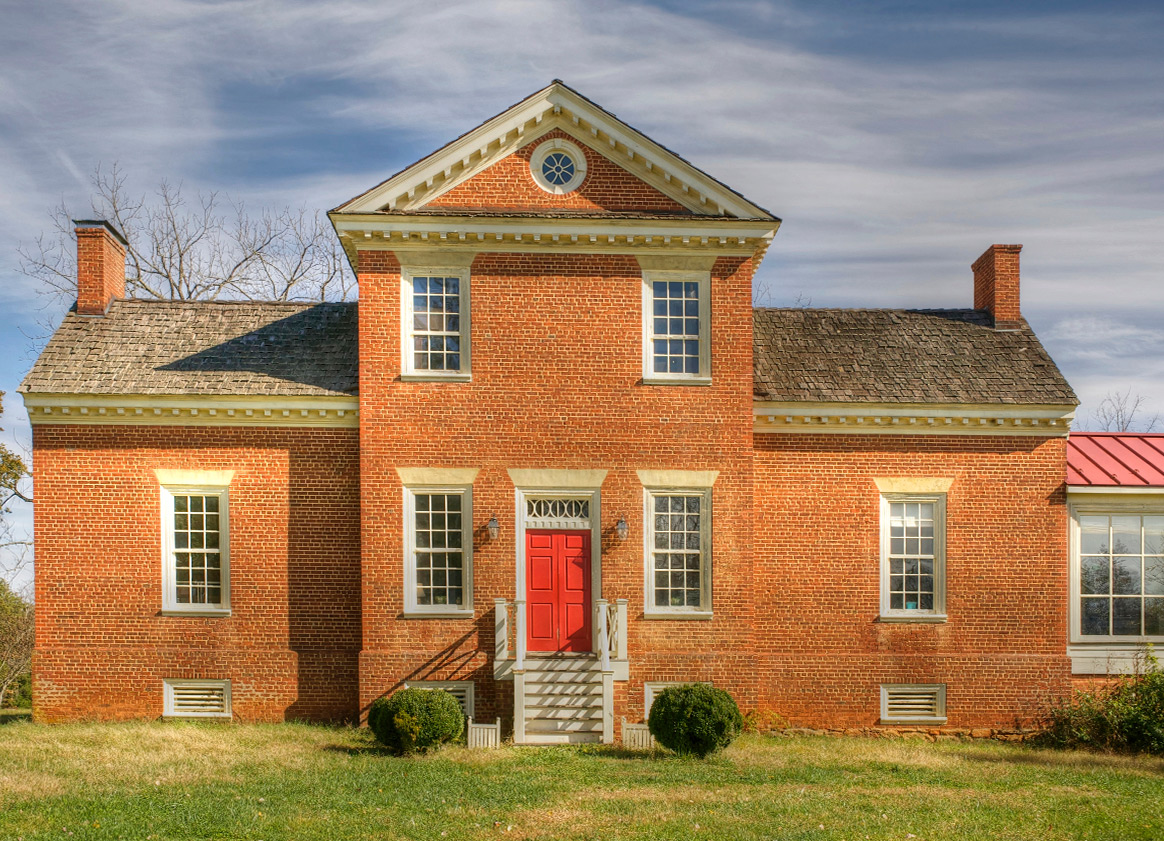 This southern Albemarle home named Mountain Grove is one of the oldest estates in the county, built in 1804 by a former Revolutionary War captain, Benjamin Harris. The tripartite design is seen in other Albemarle County homes from the period. This impressive brick house has had its periods of neglect but today stands preserved, very close to its original design.