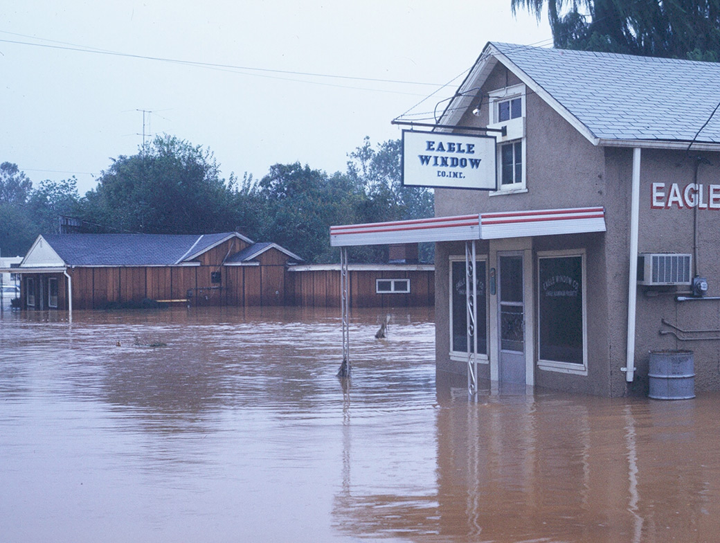 The older photo seen here was taken on East High Street in the summer of 1972 when the Rivanna River overflowed its banks. By the time it reached Virginia, Hurricane Agnes was only a tropical depression, but it still dumped more than 7 inches of rain on Charlottesville on June 22. Including the previous day’s rains it was closer to 10 inches in total according to the weather service records. Although Charlottesville didn’t get the worst of it (Central PA got more than 15 inches), the local flooding and devastation was significant. Hurricane Agnes was the most costly in terms of dollars the U.S. had seen up to that point. In Scottsville, VA the flooding that came with Agnes holds the record, 4 feet higher than even Camille, the devastating storm that hit Central Virginia just three years earlier. The “now” image was taken in 2012.